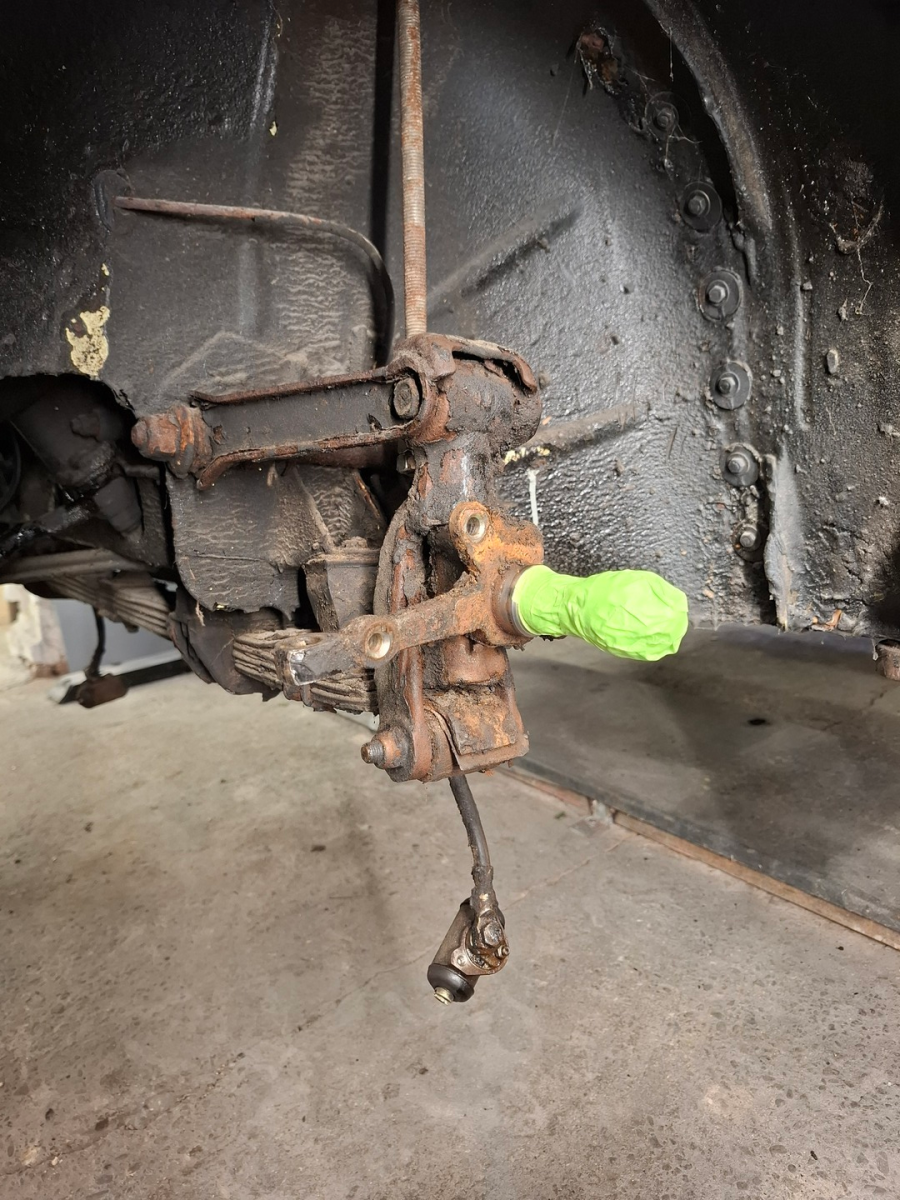 Die Achsschenkel habe ich unter km-dickem Bitumen und Fett-Dreck wiedergefunden. Unter zuhilfenahme von reichlich Fettlöser (nein kein Underberg) und Bürste und Schaber sahen die Dinger wieder sehr ordentlich aus. Obendrein sind die auch noch tip-top in Ordnung.