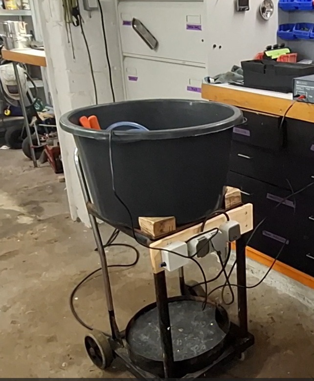 Teilewaschmaschine! Wollte ich immer schon haben, aber die zu kaufenden Blechbüxen gefielen mir nicht. Also selber denken und selber bauen..